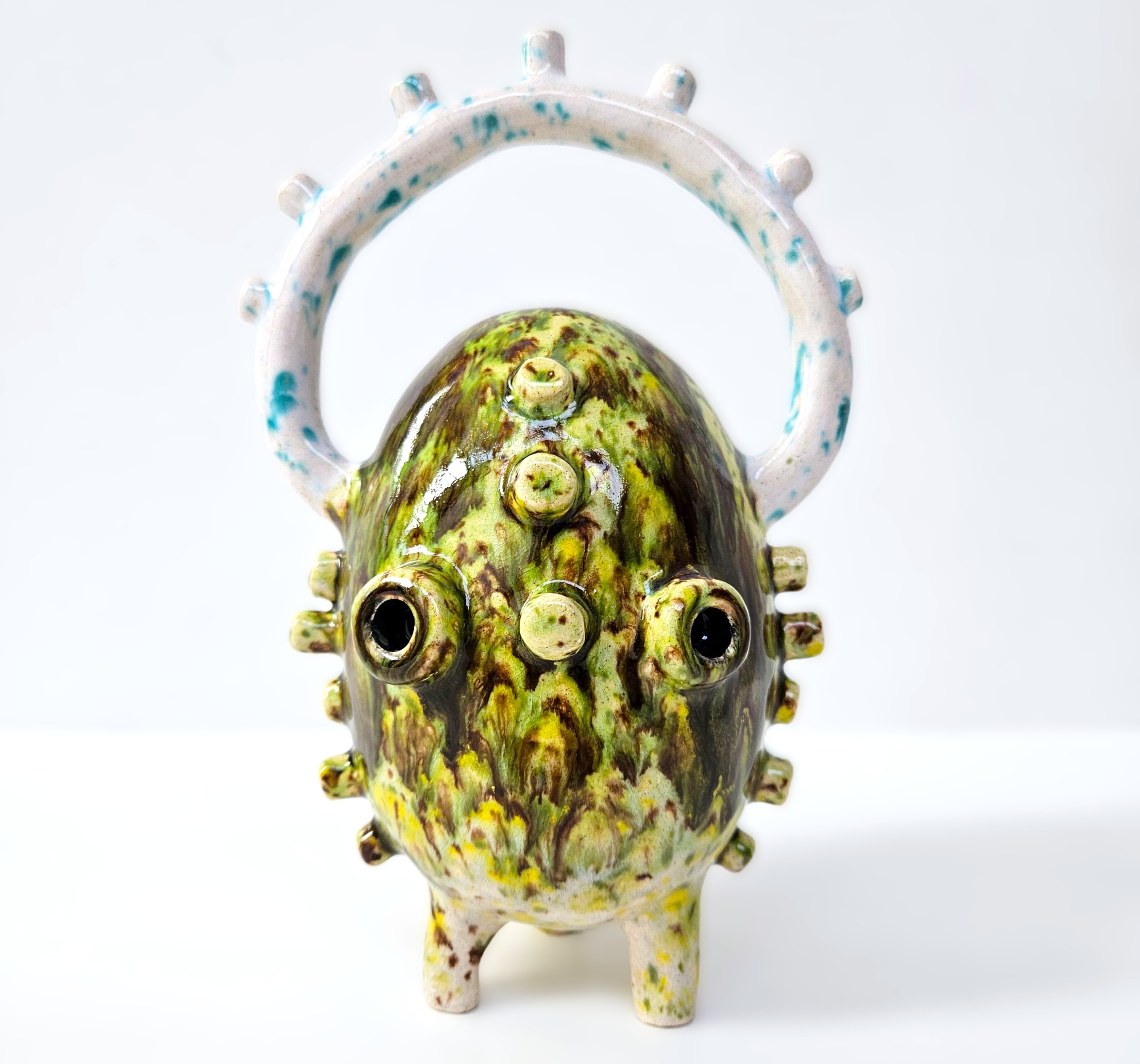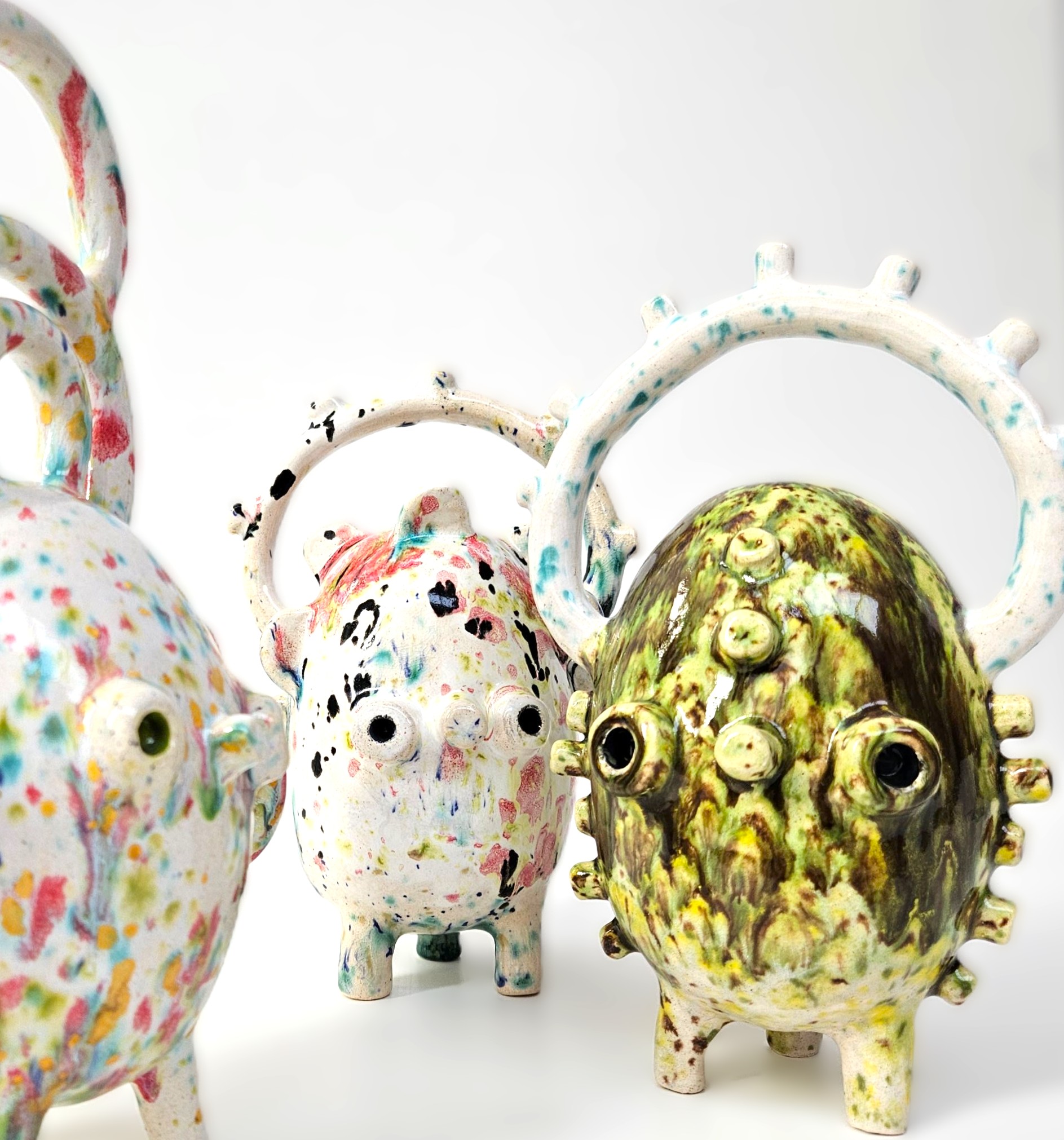 Under the name Naosourita, artist Joana Nogueira (Moledo do Miño, 1988) hides her creative universe. She has been living in Porto since 2012, where she has her ceramics studio. She studied Fine Arts and earned a Master’s in Illustration and Animation in Portugal. Since childhood, she dreamed of making a living from her art, and today she is a ceramic artist and animation director, obsessed with bringing imaginary figures to life that reflect her childhood and inner world.