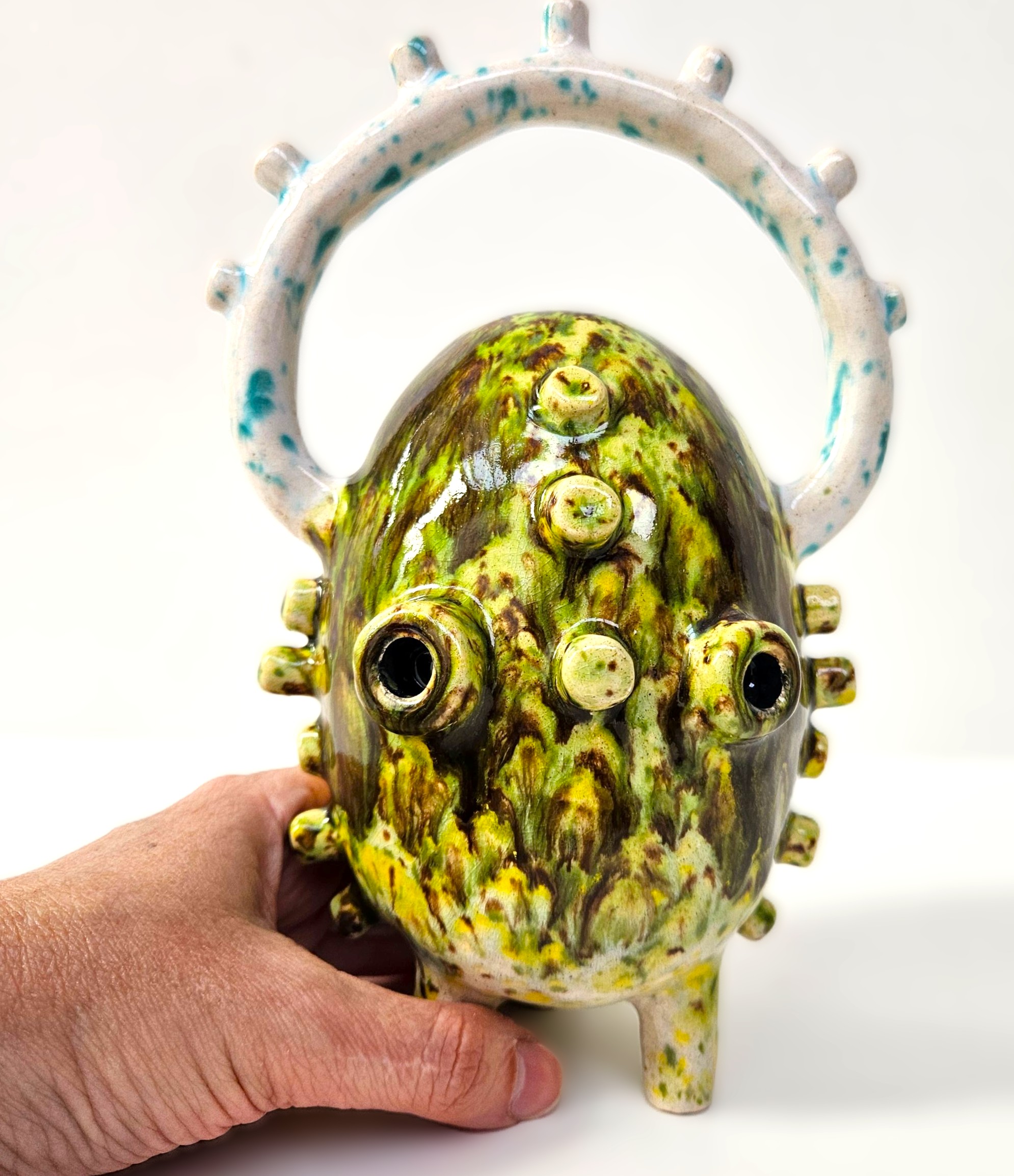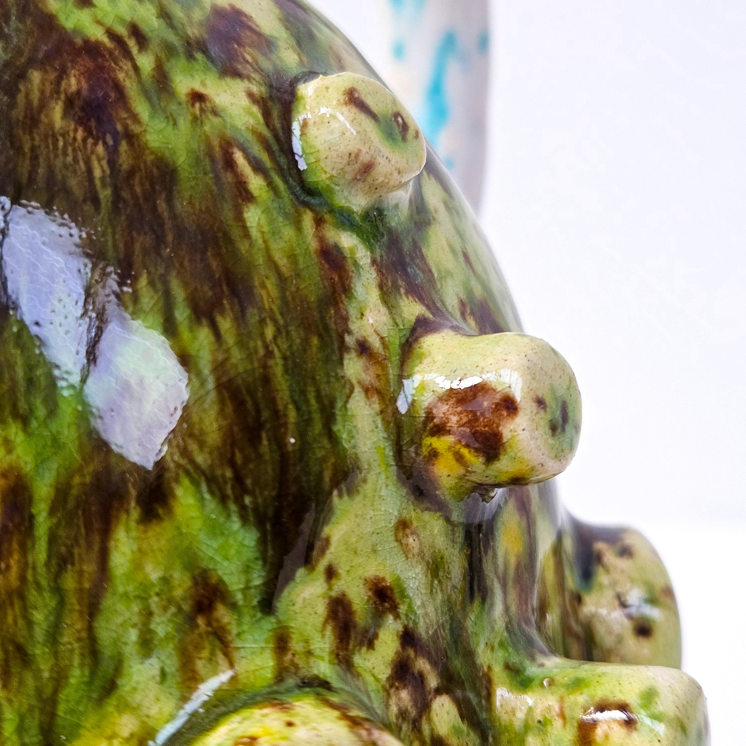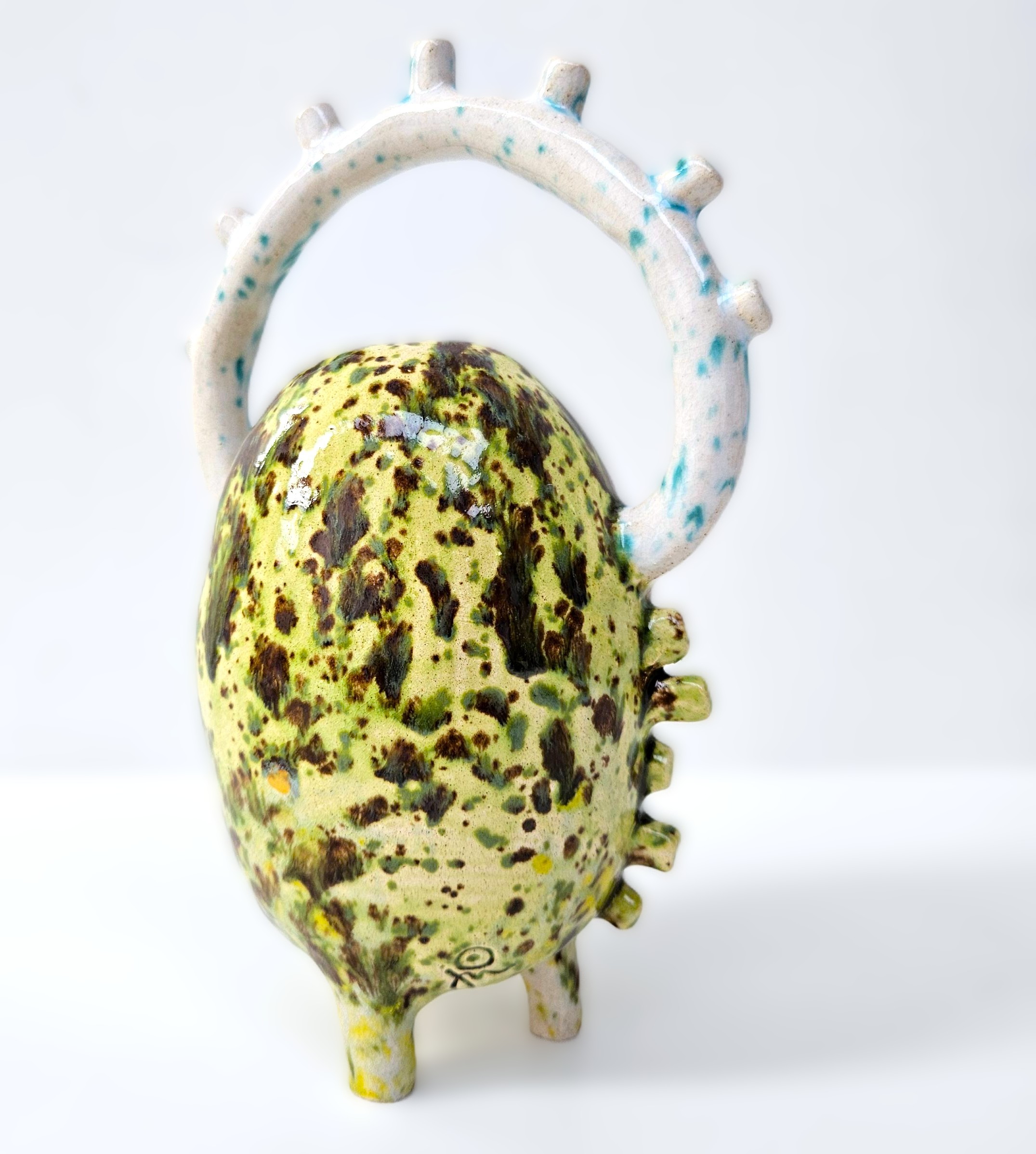 • Technique: Sculpted by hand. Stoneware, Glazes and Crystals