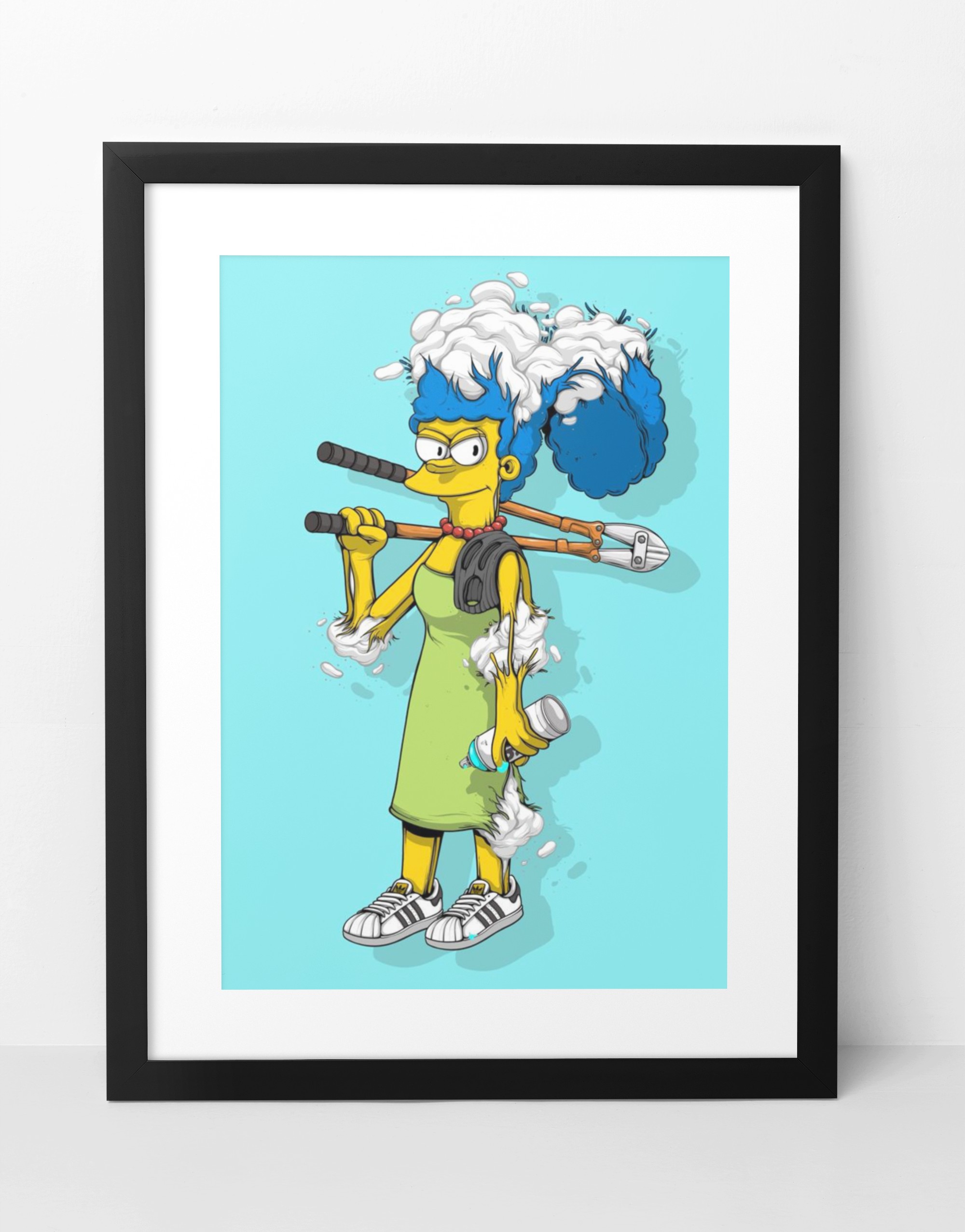 Always elegant, always holding back the chaos… until now. She has left infinite patience behind and taken control. Dhani Barragán reimagines her in this "Springfield Deconstructed" Print as the matriarch who no longer waits—she acts. Sneakers on, spray in hand, and tools ready to carve her own path.