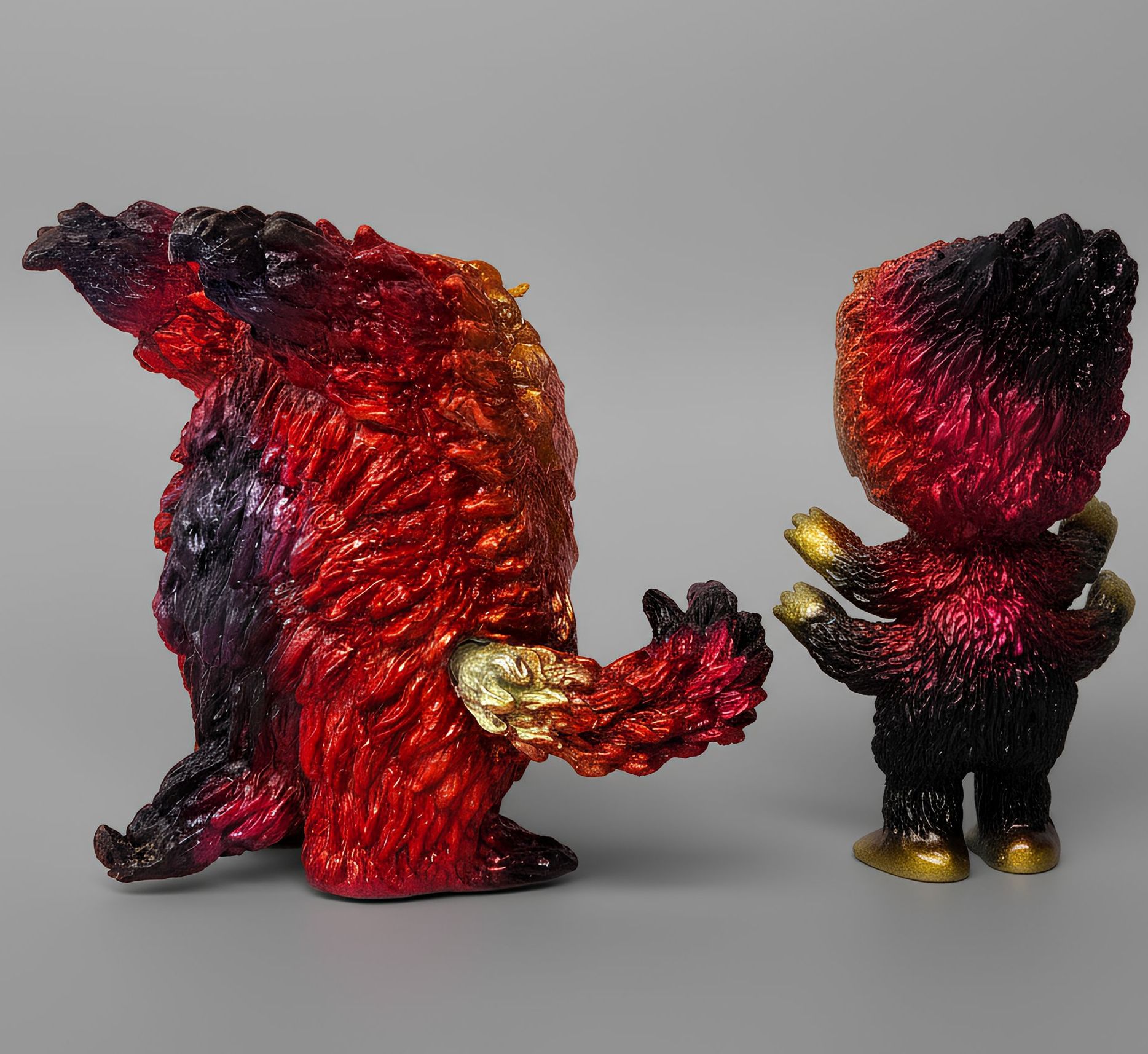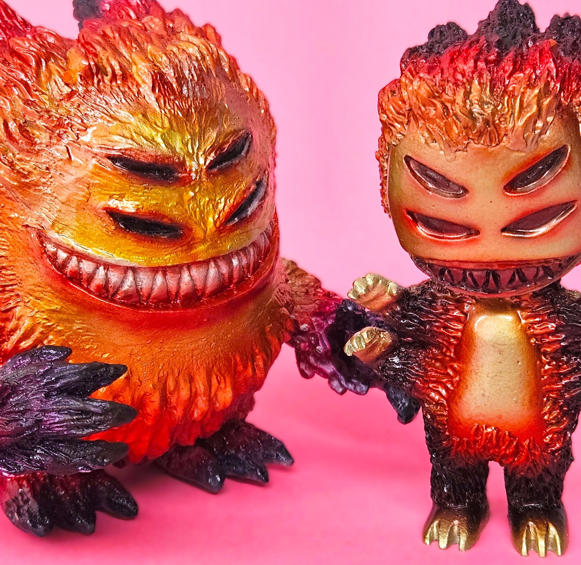 His work fuses kaiju sensibilities with an aesthetic that shifts between the galactic, the mutant, and the anthropomorphic, giving rise to creatures with such an intense presence they seem to breathe beneath the surface of the resin.