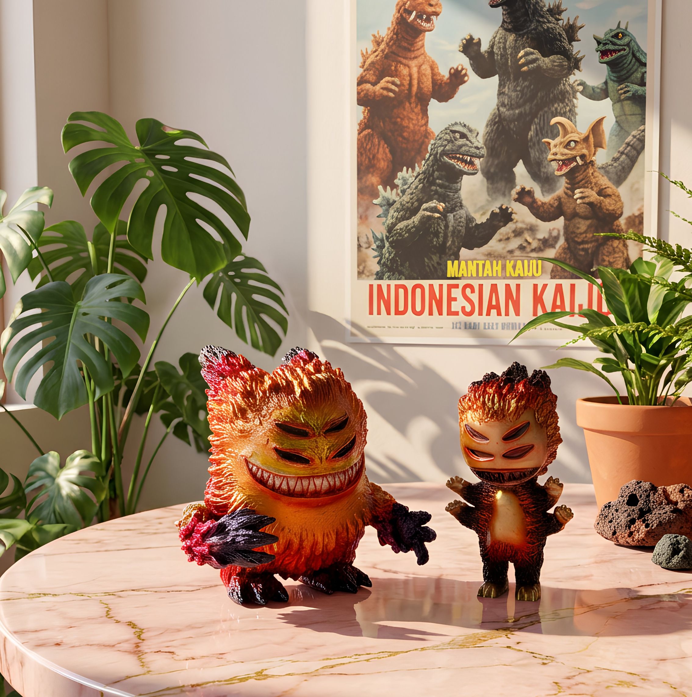 A fusion of kaiju, pop aesthetics, and the mythical monsters of Indonesian folklore —Butò Ijo and Leak—, creatures that blend magic, chaos, and an impossible-to-ignore presence.