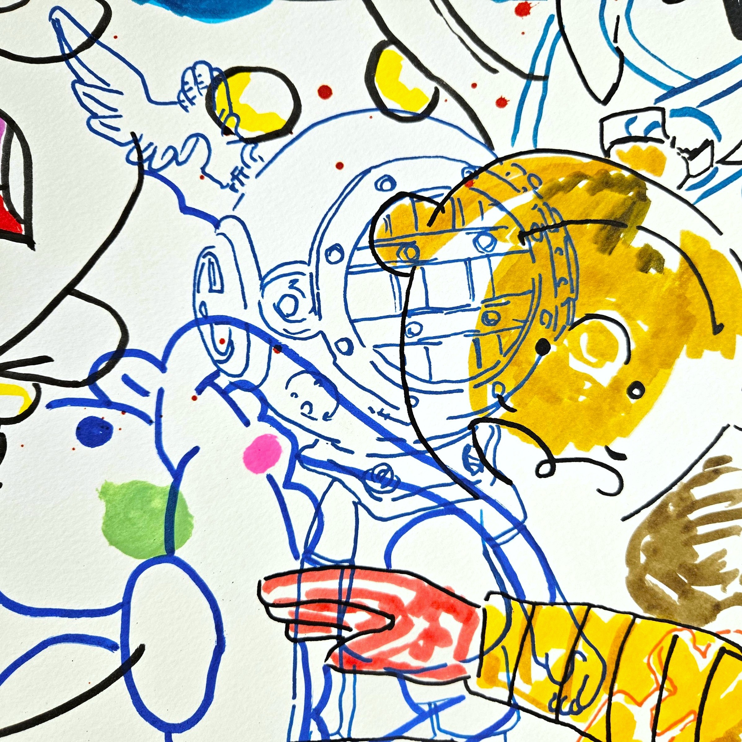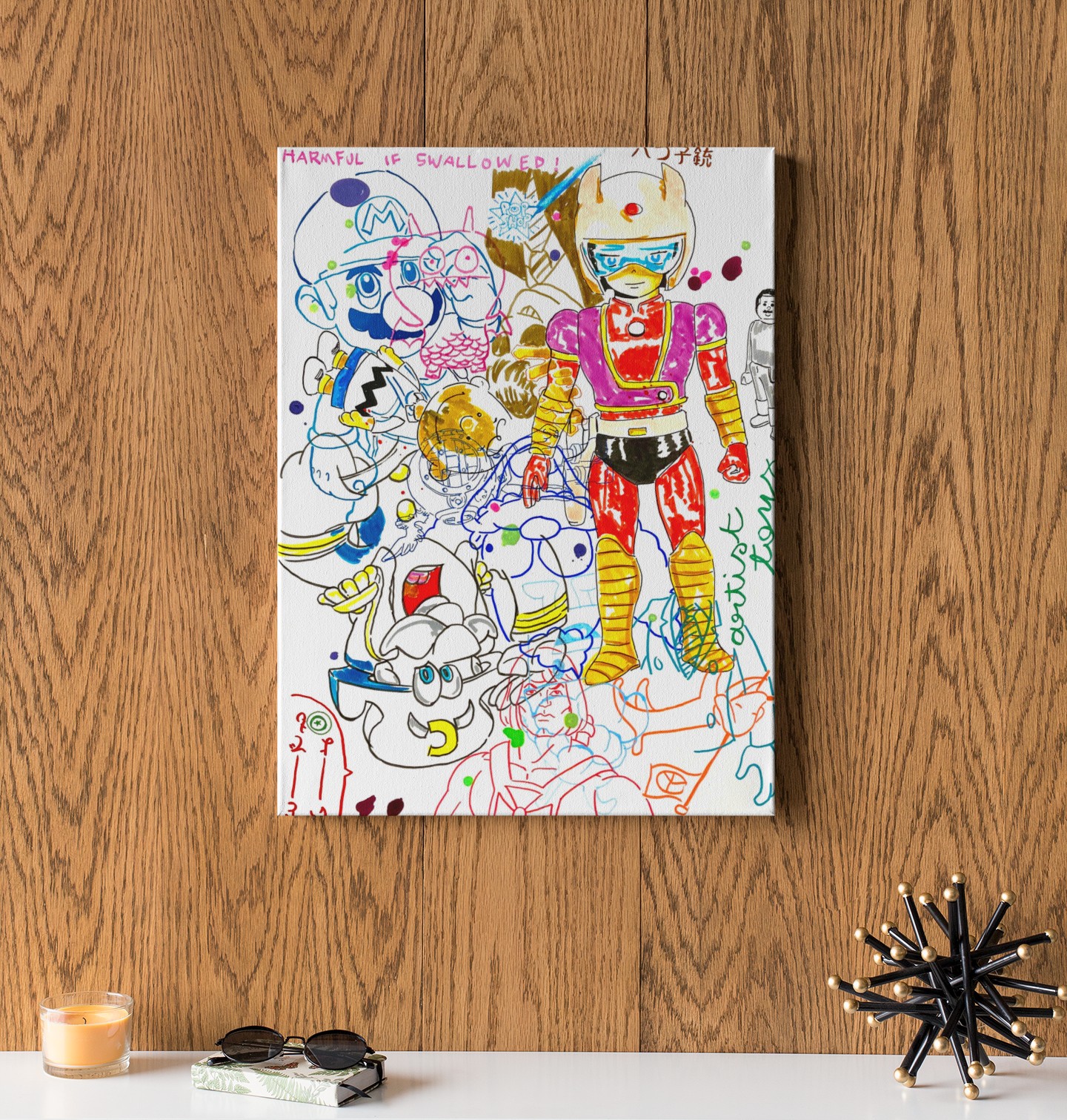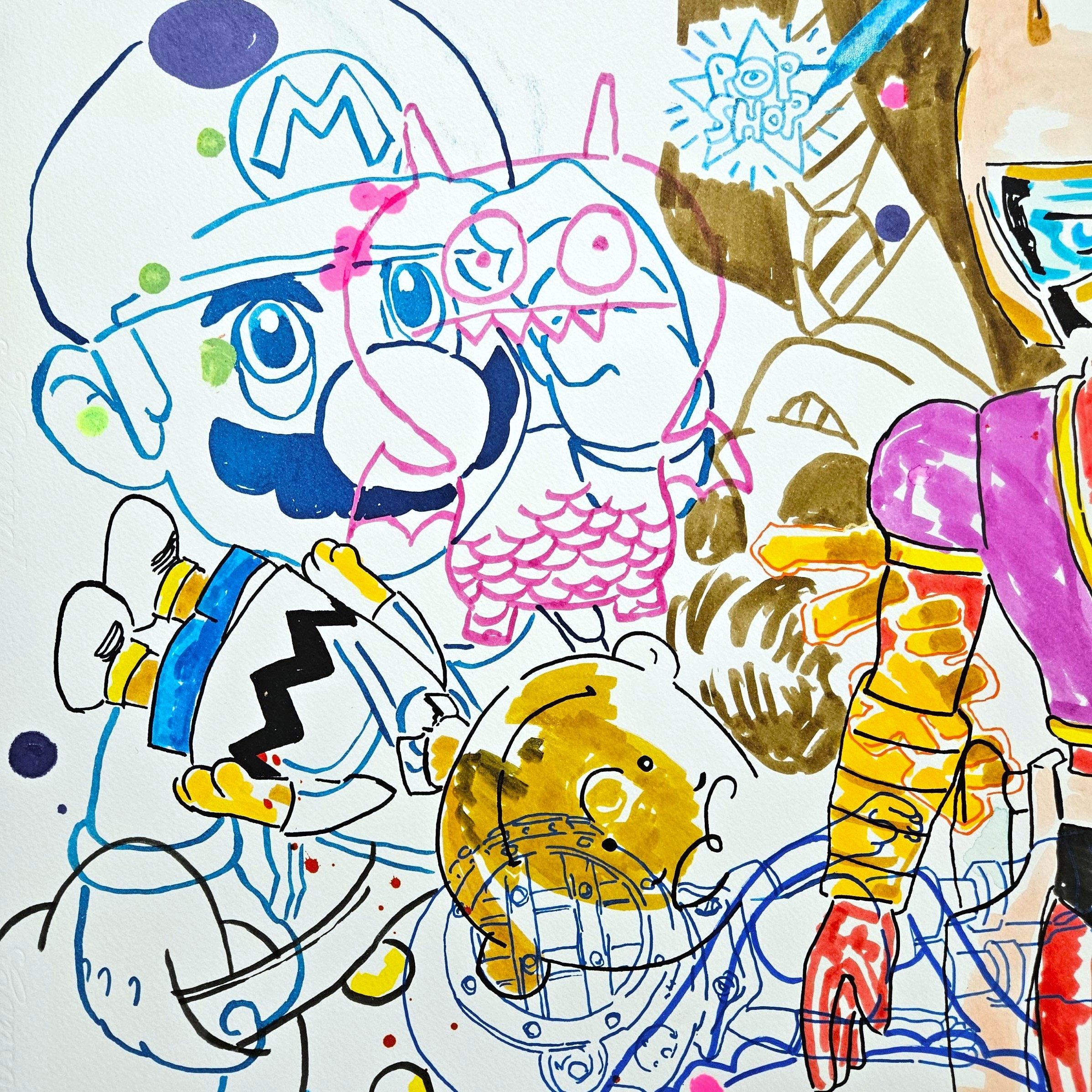 References to Nara, to Keith Haring. All of them crashing into the same paper.