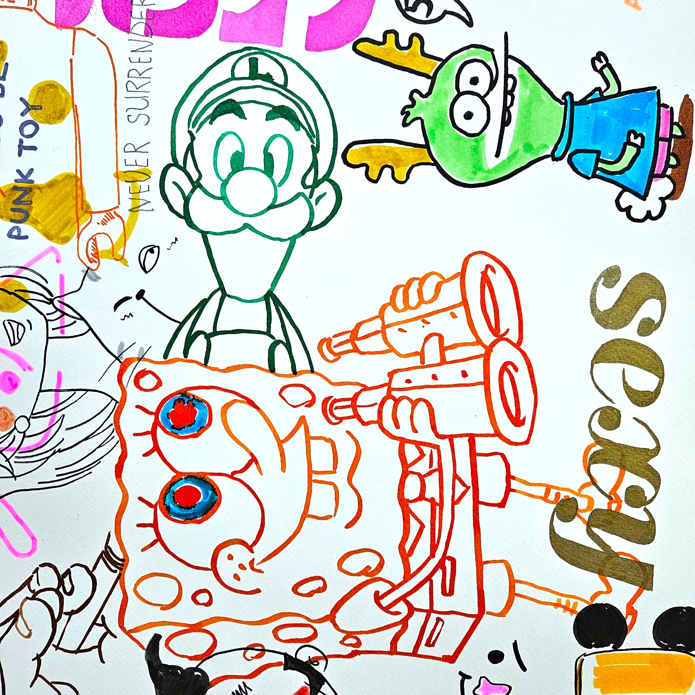 Everything you collected, cartoons, toys, Art Toys, pop culture, now explodes on paper.