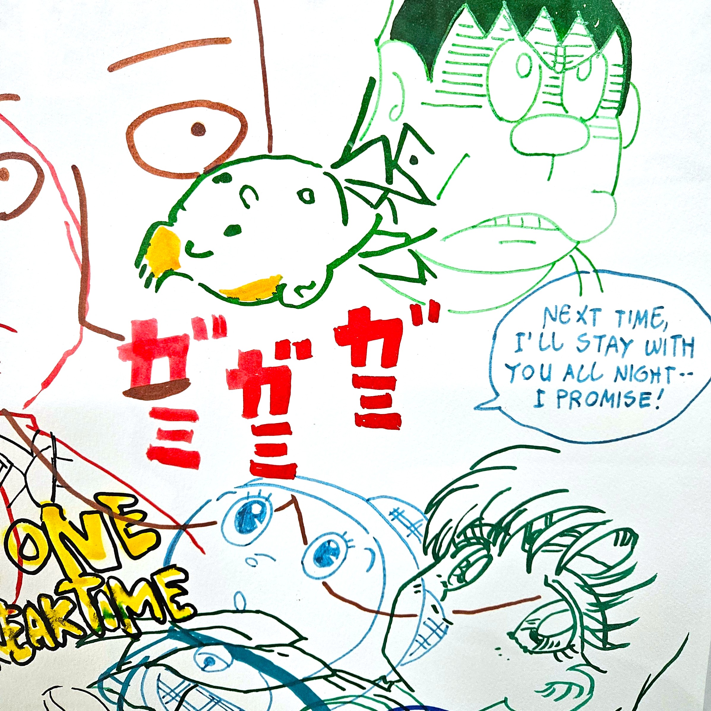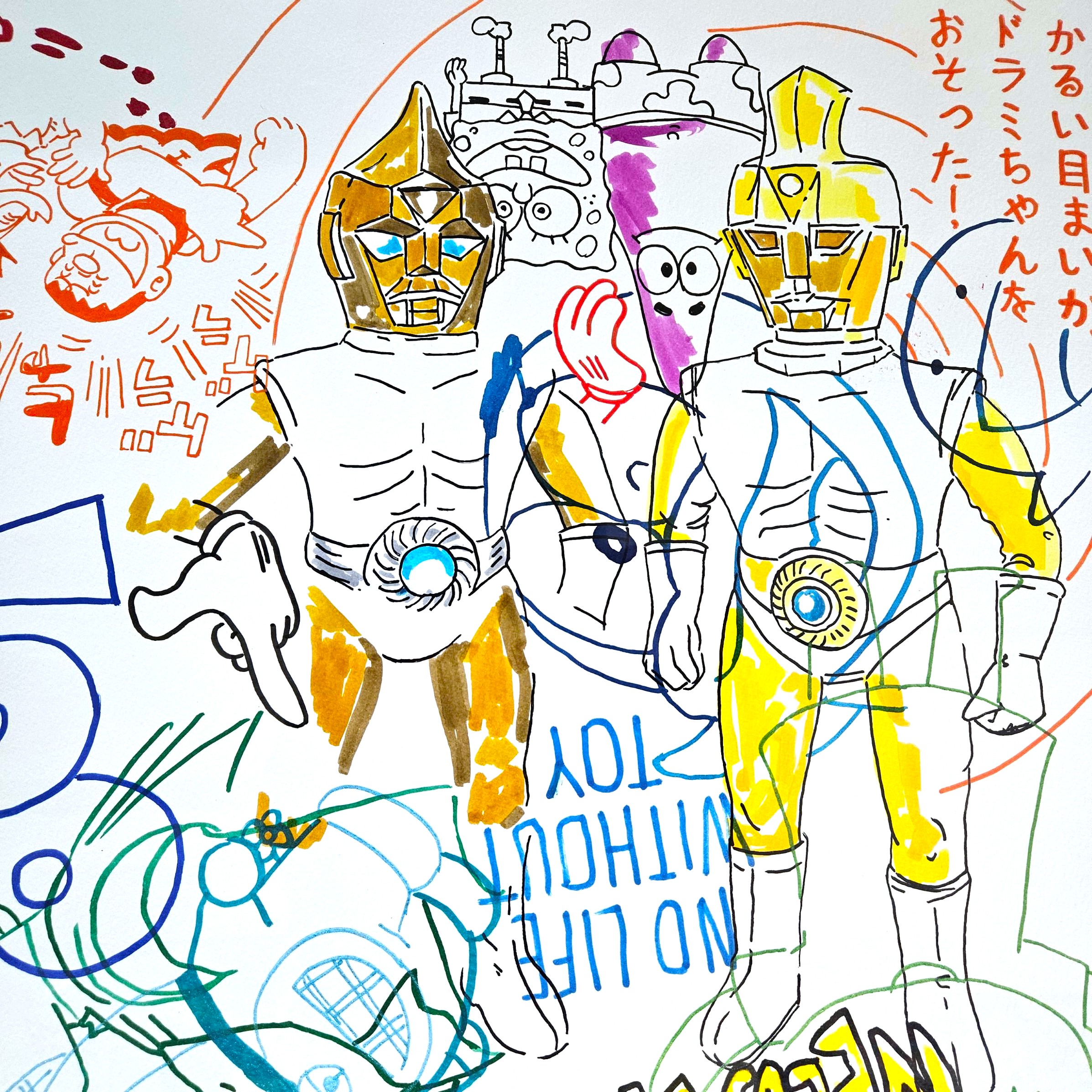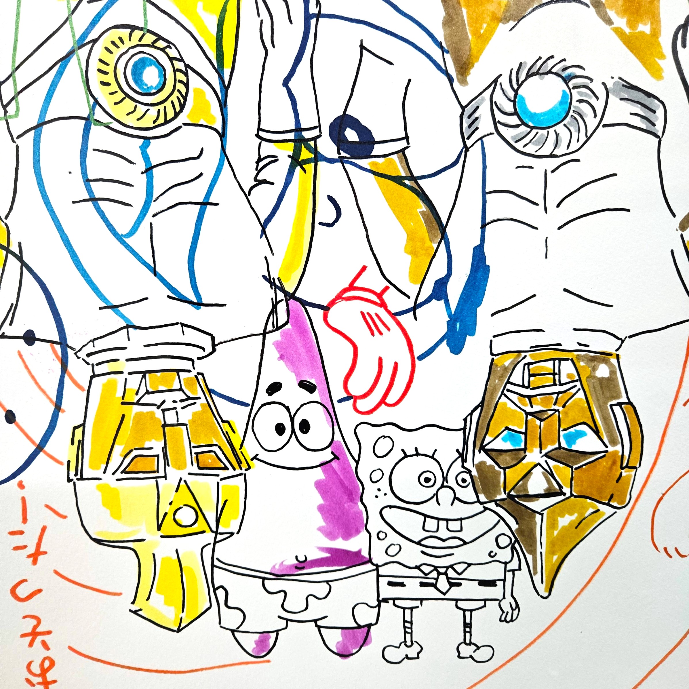Luffy, Tintin, Nobita, Patrick, SpongeBob, Nara’s little drummer girl, tokusatsu robots (Mirrorman-Spectreman)…All mixed up. All distorted. All inside you.