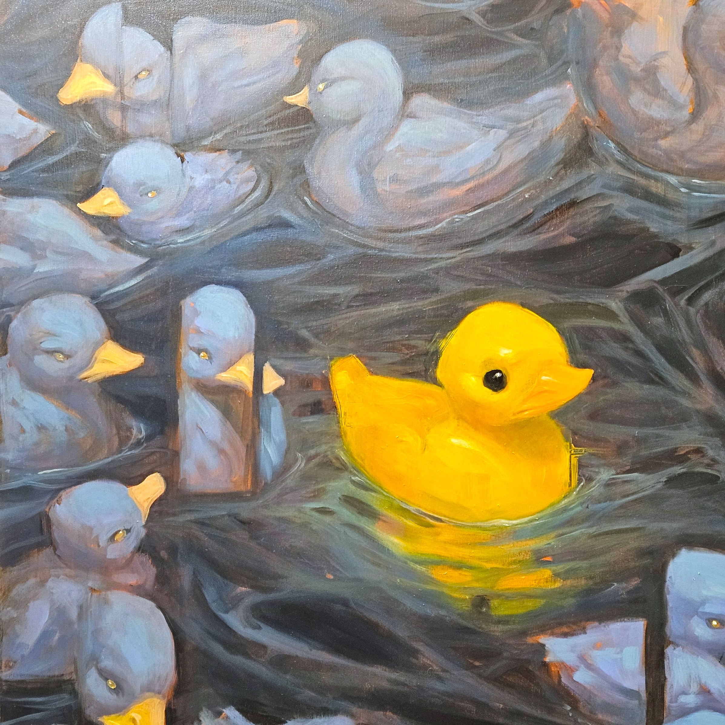 And this painting doesn’t shout. It whispers. From the center. Floating. Alone. Surrounded by dim figures, by clones, by repeated molds. But it doesn’t hide. It doesn’t lower its head. It doesn’t ask for permission.