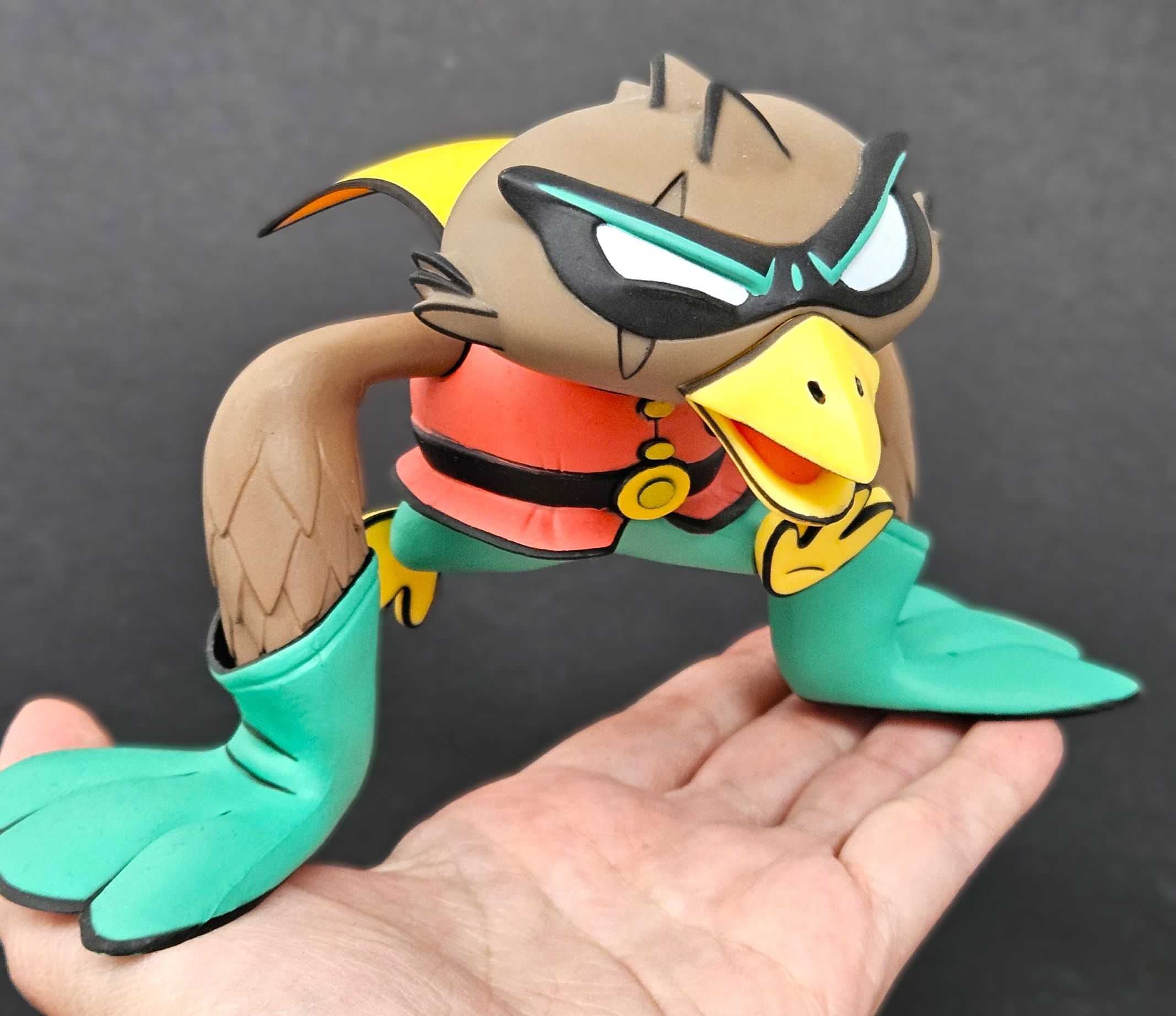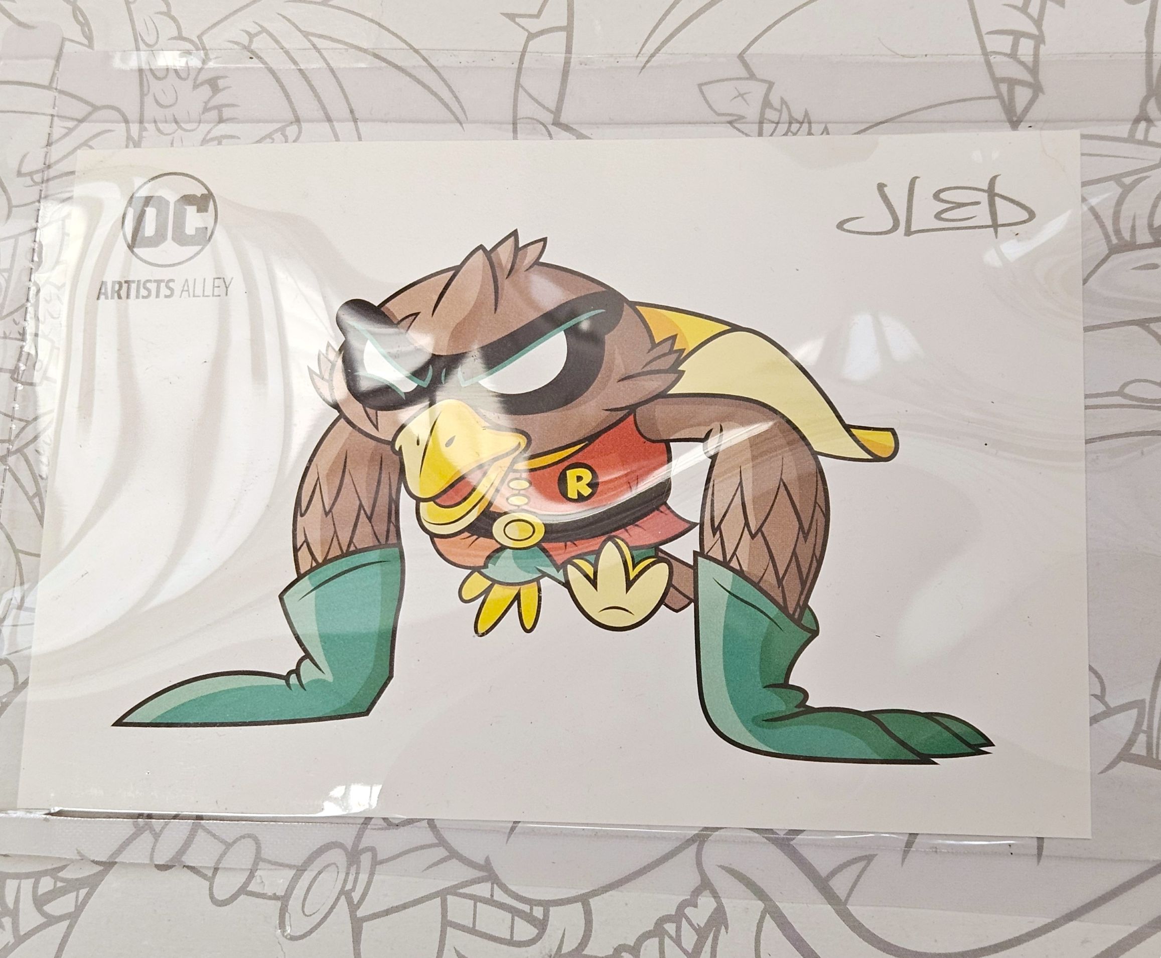 An anthropomorphic Robin, ready to save Gotham City, part of the DC Artists Alley collection — where some of the most distinctive artists of today’s scene reimagine the icons of the DC Universe.