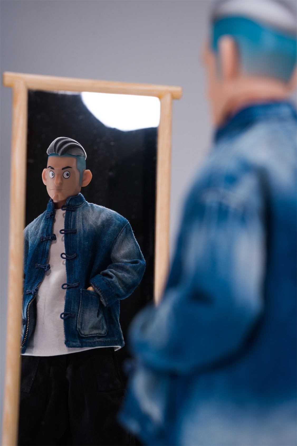 This action figure masters the codes—fashion, street, and scene. Oriental-cut jeans, statement glasses, proportions tuned to the millimeter. Every fold, every texture, every pose is crafted like a fashion editorial compressed into 1/6 scale. He’s not seeking approval—he knows he’s being seen.